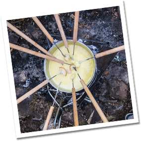Inmitten des Waldes, dort wo sich Fuchs und Hase „Gute Nacht“ sagen, wo der Mensch seine Batterien auftanken kann, da knistert das Feuer für das Waldfondue. Aus feinsten Zutaten wird das Fondue über dem Feuer für Sie und Ihre Gäste zubereitet.